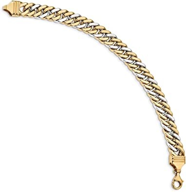 Heavy Duty Two-Tone Cuban Curb Bracelet in Solid 14k Yellow Gold with Secure Lobster Clasp (10.4mm)